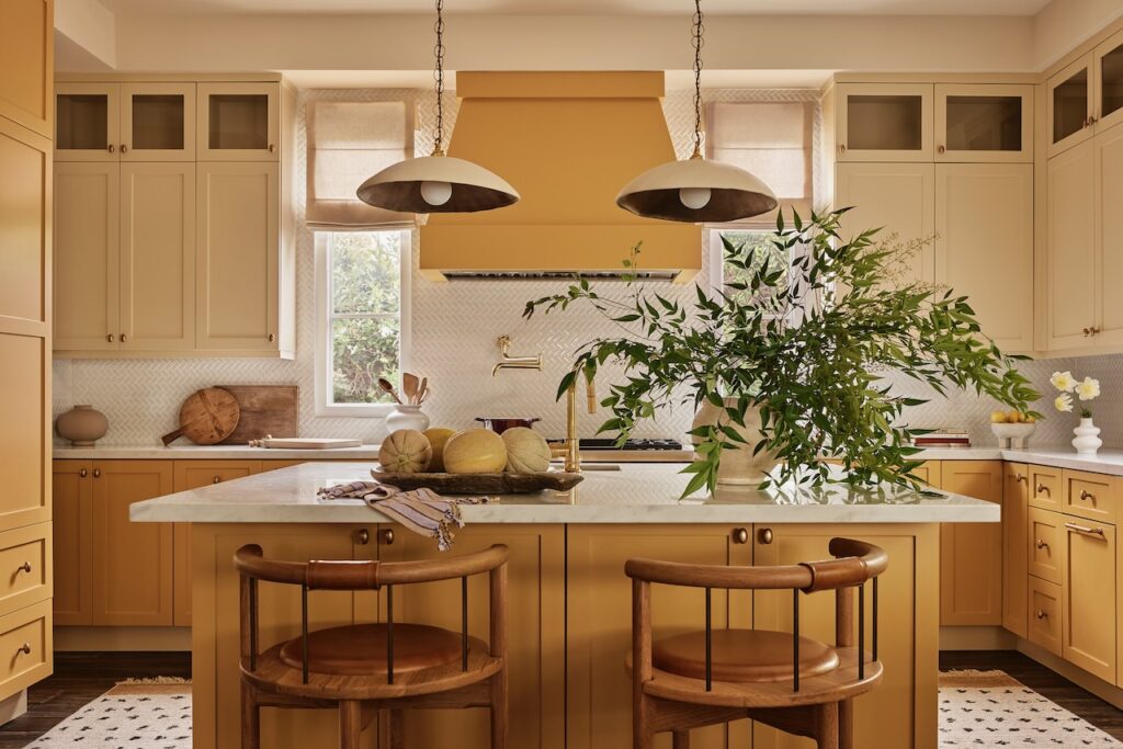 While the existing layout remained intact, they infused detail and restraint throughout to breathe new life into the interiors. The cabinetry, once a cool gray, found new depth in warm, nature-inspired tones: India Yellow in the kitchen, mustard in the mudroom and beige in the bathrooms. Chrome fixtures were replaced with unlacquered brass, their living patina adding instant character and artful imperfection.